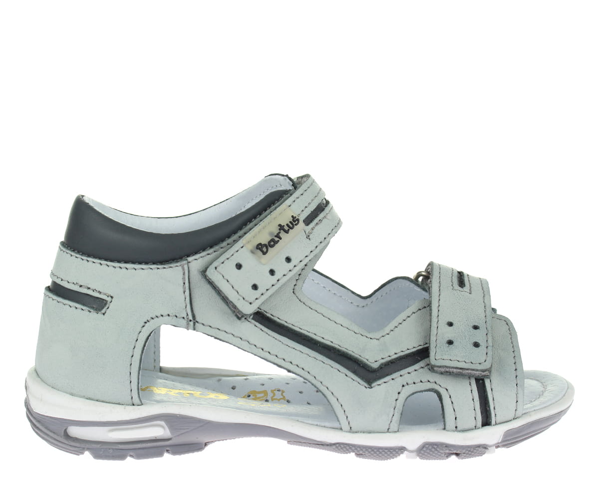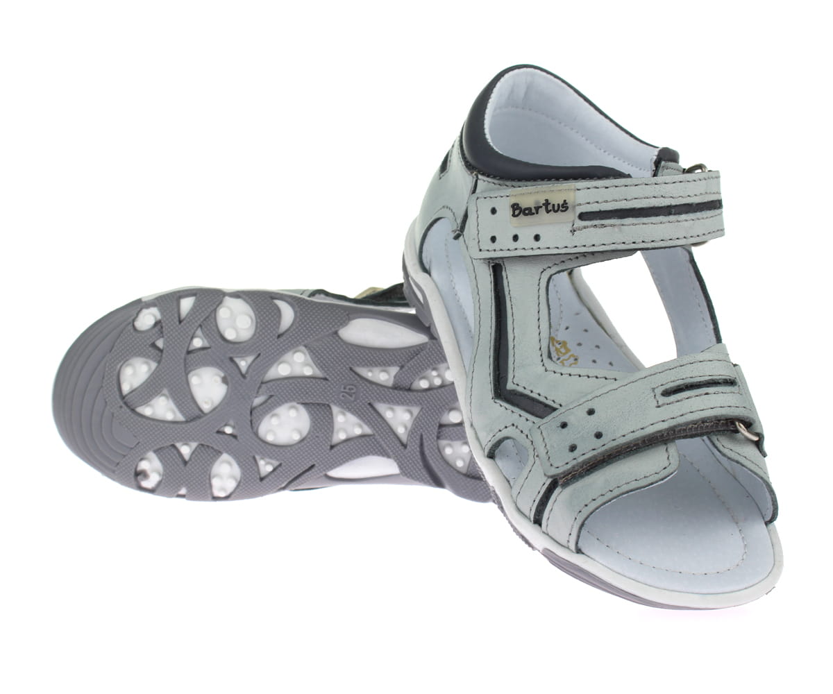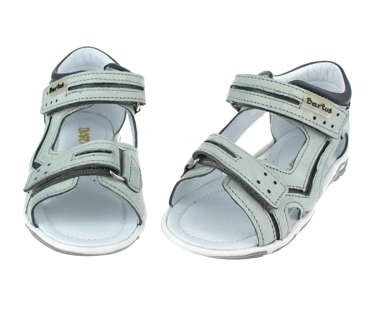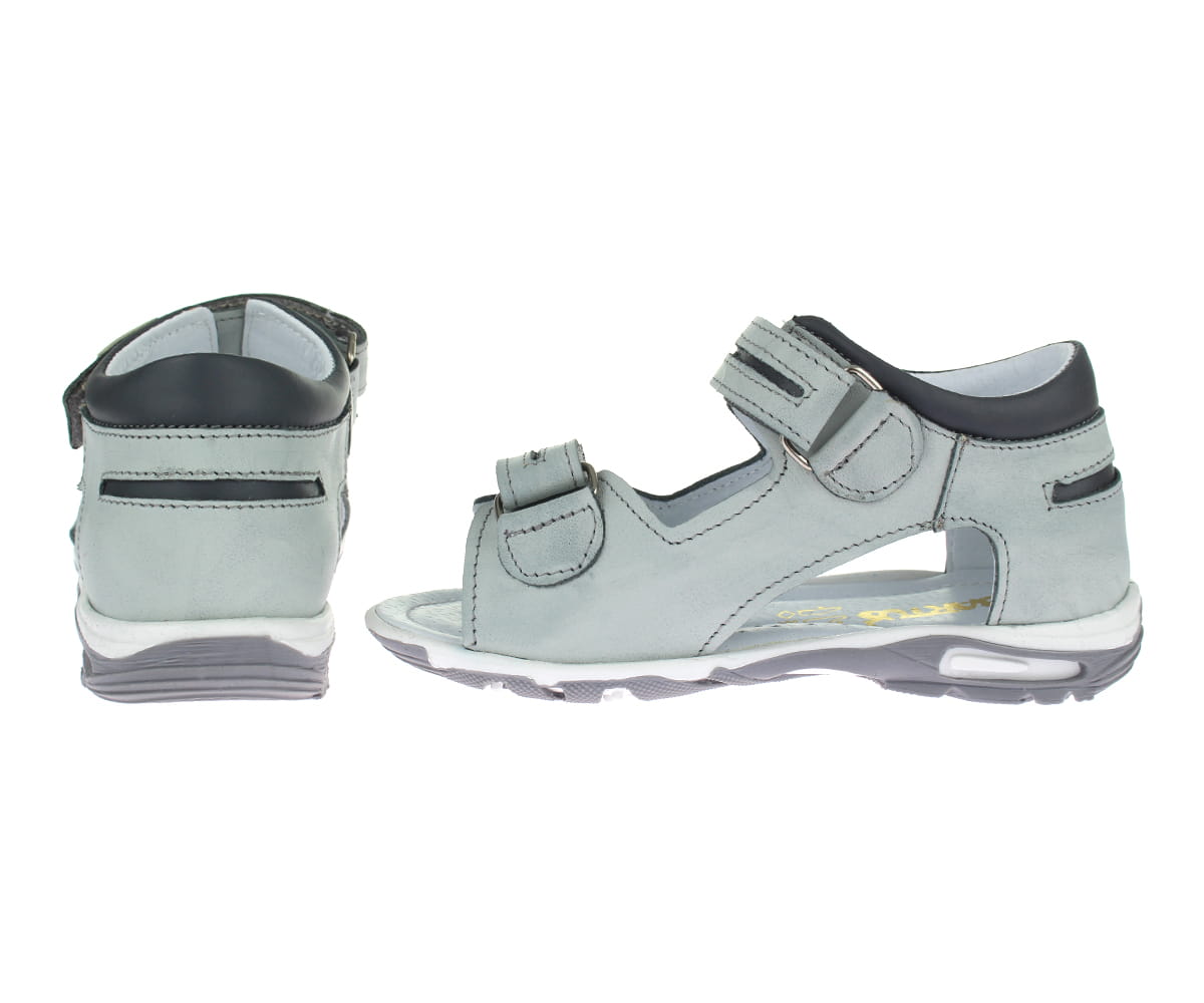Sandałki od początku do samego końca zostały wyprodukowane w naszej firmie. Piękne, klasyczne buciki wykonane w całości ze skóry naturalnej. Fason z odsłoniętymi paluszkami będzie bardzo praktyczny podczas ciepłych dni. Precyzyjne szycie podkreśla kształt bucików. Zapięcie na dwa mocne rzepy to jednocześnie regulacja obuwia, a co najważniejsze to możliwość dopasowania go do stopy dziecka. Usztywniona pięta to główna zaleta tego modelu. Wnętrze skórzane, miękkie z profilowana wkładką, która zapobiega powstawaniu płaskostopia. Podeszwa biało popielata, termoplastyczna wzmacnia stabilność kroków. Te buty to idealne połączenie stylu oraz komfortu.
